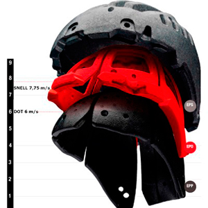O capacete possui 3 camadas de EPS com densidades diferentes, que atuam em conjunto para proteger o piloto em qualquer colisão, tal proteção excede todos os maiores testes de resistência para capacete, com um resultado final extraordinário em termos de proteção para a cabeça.